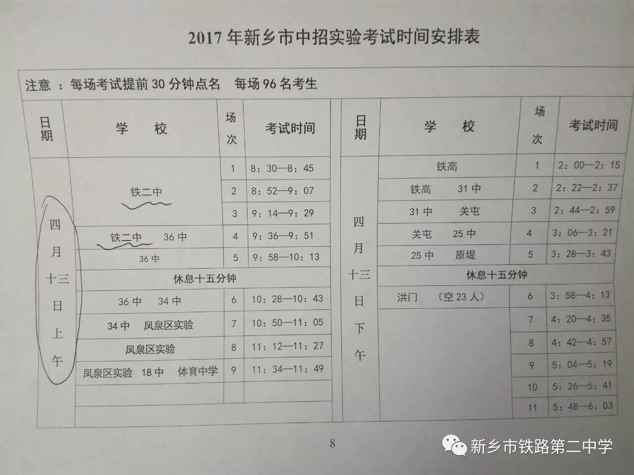 铁二中初三年级参加2017年中招实验考试时间确定!!!