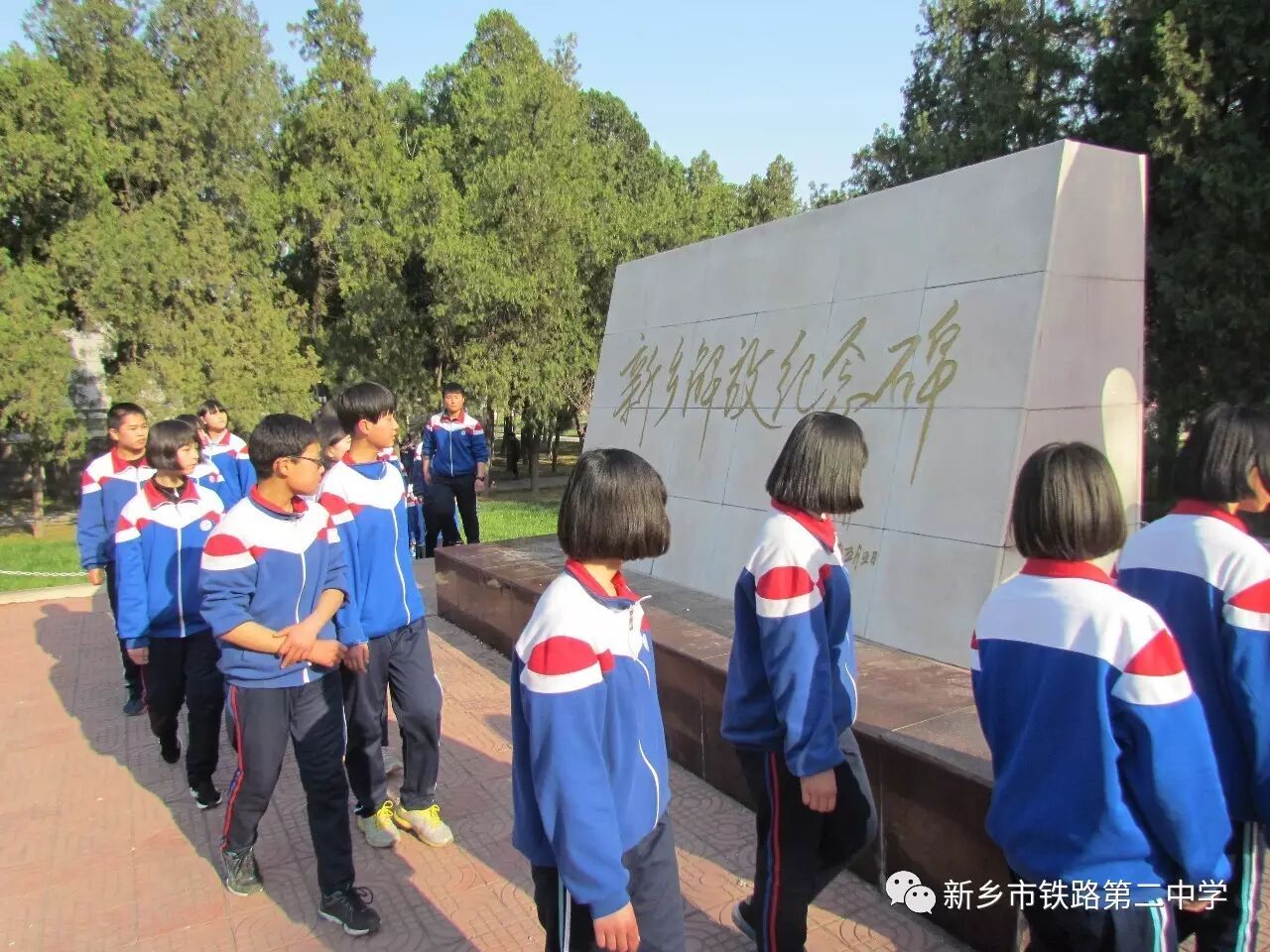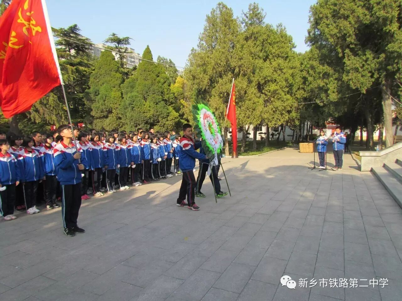 在清明节即将到来之际,4月1日下午,新乡市铁路第二中学团委组织学生代表前往新乡市烈士陵园祭扫先烈,缅怀***先烈的丰功伟绩。在英雄纪念碑前,伴随着国歌的奏响,学生代表首先向烈士纪念碑敬献了鲜花,紧接着全体团员肃立,为***先烈默哀3分钟,然后重温誓词,表达了对烈士的敬仰之情,并表示要坚决继承***传统,争做时代新人,为振兴中华而努力奋斗的决心,***后同学们依次近前瞻仰纪念碑。