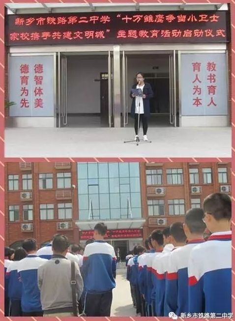 为了广泛发动学生和家长参与我市全国文明城市创建活动,进一步提高创文知晓率、参与率和满意率,凝聚全市人民力量,掀起创建全国文明城市热潮,新乡市教育局决定在各城区中小学开展“十万雏鹰争当小卫士,家校携手共创文明城”主题教育活动。在市文明办联合教育局举办的主题教育活动启动仪式之后,我校随之也举行了启动仪式。