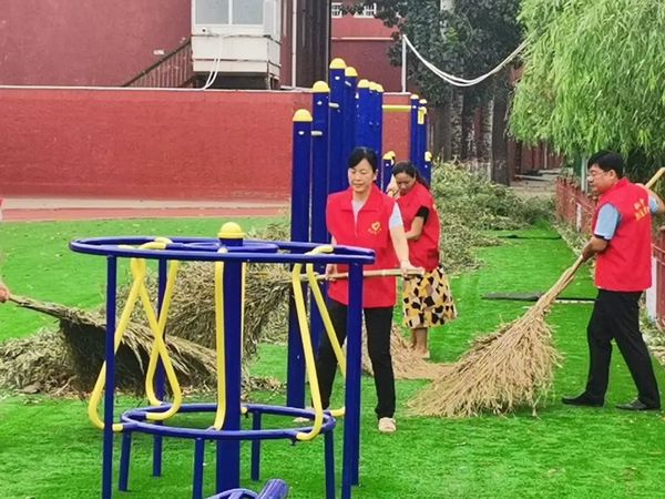 金风送爽,秋意渐浓。为确保学校秋季开学后各项工作正常、有序、顺利地开展,8月22日上午,在校长杨新宇的带领下新乡市铁路第二中学中层以上领导到校参加防汛工作。各位领导进入校园后立即拿起工具,投入到校园防汛排查工作中去,清理校内排水口附近杂物杂草,疏通排水口。从学校操场到生活区,从教学区到大门口对校内防汛工作进行了仔细的检查。