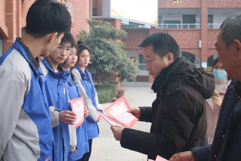 杨新宇校长为高三年级开学统考文化课成绩优异的同学颁奖,鼓励这些学生再接再厉,再创佳绩。
