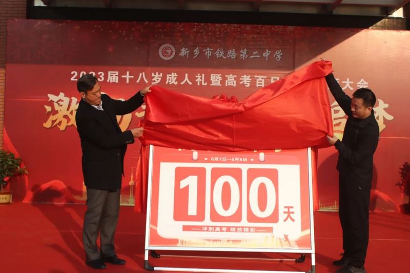 鏖战百日凌绝顶,十年磨剑铸辉煌。校长杨新宇、副校长邹曦共同为高三同学揭开距离高考仅剩一百天的倒计时牌,希望同学们在接下来的一百天中珍惜时间,乘风破浪,筑梦远航。
