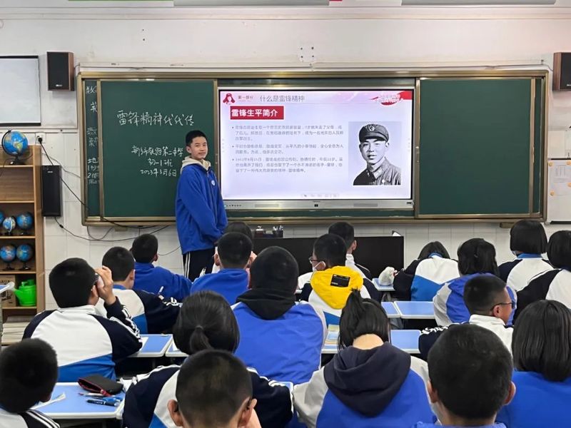 利用学校大屏进行宣传,号召广大师生重温雷锋事迹,学习雷锋精神。各班召开“雷锋精神代代传承”主题班会,引导学生学习雷锋要从自己做起、从身边做起、从小事做起,学习雷锋对生活的积极乐观的态度。