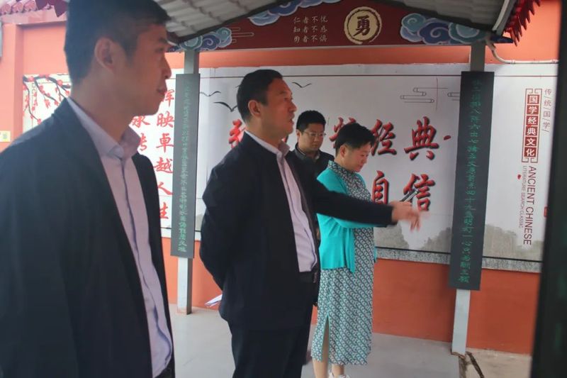 随后,麻局长来到我校文化长廊,细致查看了长廊墙壁上学生优秀作品展出,并对长廊柱子上篆刻的对联表现出浓厚的兴趣。麻局长对我校“以美育美美美共美”的办学理念和对学生未来发展负责的“一体两翼”办学策略表示充分的肯定和赞扬,并强调要加强校园文化阵地建设,建设书香校园、艺术校园。