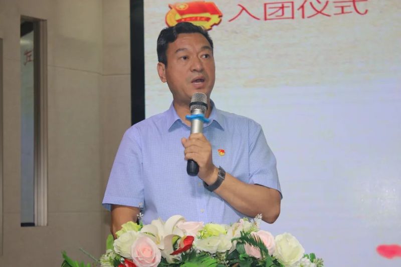 校党支部书记、校长杨新同志上台对新团员们提出期许,他表示,人生有三步曲,那就是入队、入团、入党。他再次为团员们明确团的性质,明确共青团是党的助手和后备军这一重要作用,告诫入团不只是形式,团徽也不只是标志,而是应该成为自己在学习和生活的动力,成为鞭策自己的准则。应志存高远,早早立下报国志,高扬理想风帆,静下心来刻苦学习,努力练好人生的基本功,做能吃苦、敢担当、有理想、肯奋斗的新时代好青年。以青春之我、奋斗之我和实际行动服务家乡、报效国家。
