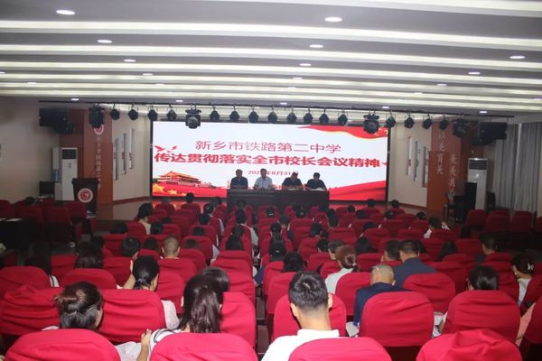 2023年8月31日,新乡市铁路第二中学在学校一楼报告厅举行了2023-2024学年第一学期工作部署会。本次会议旨在明确新学期的各项工作目标,确保学校各项工作的有序进行。会议由副校长张临平主持,书记、校长杨新宇、副校长王东文、副校长邹曦参加会议并讲话,共同为新学年的开启绘制崭新篇章。