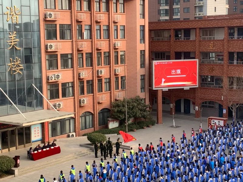 “升国旗,奏唱国歌!”伴随着庄严响亮的国歌,五星红旗冉冉升起。精神饱满的学子目光如炬,身姿如松。新学期意味着新征程的开始。莘莘学子,斗志已然在心。
