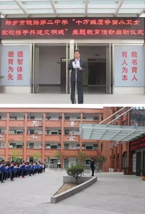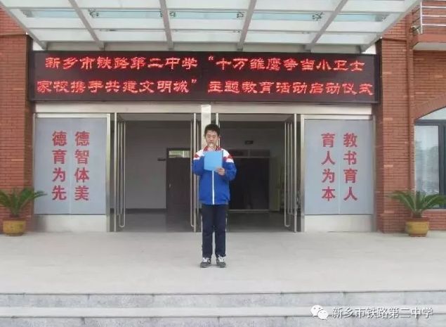 为了广泛发动学生和家长参与我市全国文明城市创建活动,进一步提高创文知晓率、参与率和满意率,凝聚全市人民力量,掀起创建全国文明城市热潮,新乡市教育局决定在各城区中小学开展“十万雏鹰争当小卫士,家校携手共创文明城”主题教育活动。在市文明办联合教育局举办的主题教育活动启动仪式之后,我校随之也举行了启动仪式。